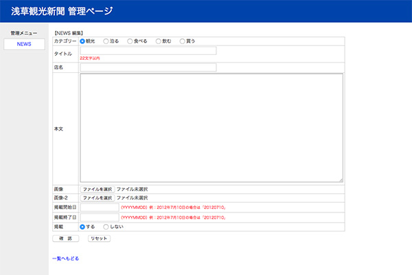 最新NEWS投稿機能